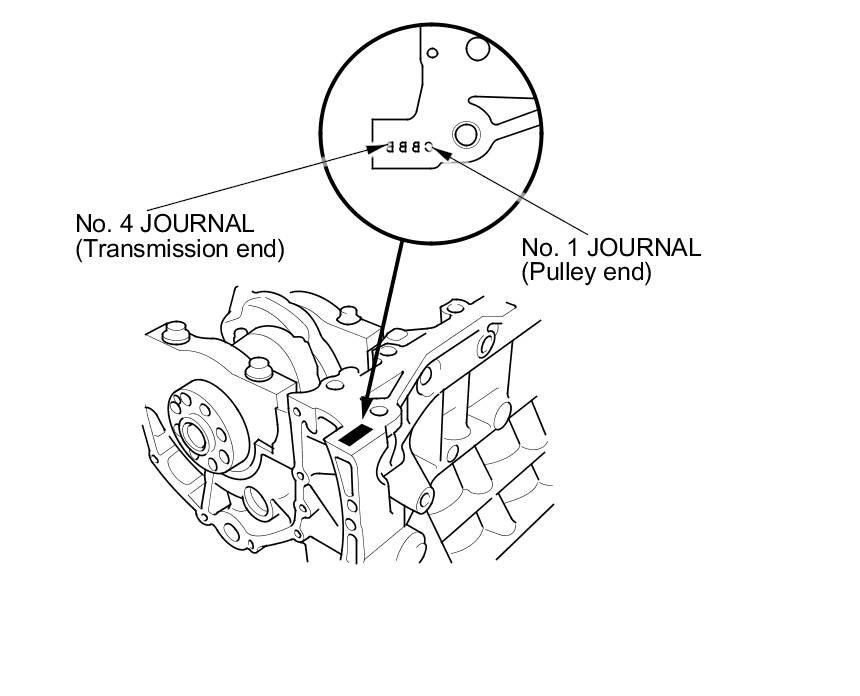 Letters or bars have been stamped on the end of the engine block as a code for the size of each of the four main journal bores.