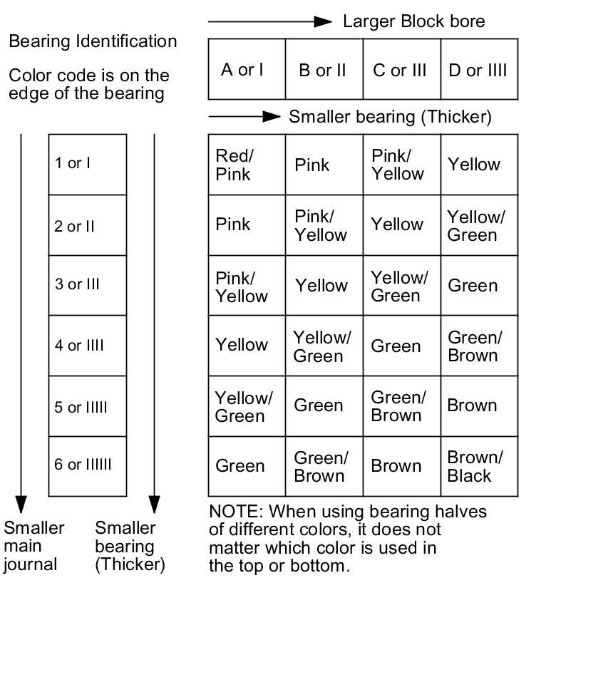 Use them, and the numbers or bars stamped on the crankshaft (codes for main journal size), to choose the correct bearings. If the codes are indecipherable because of an accumulation of dirt and dust, do not scrub them with a wire brush or scraper. Clean them only with solvent or detergent.