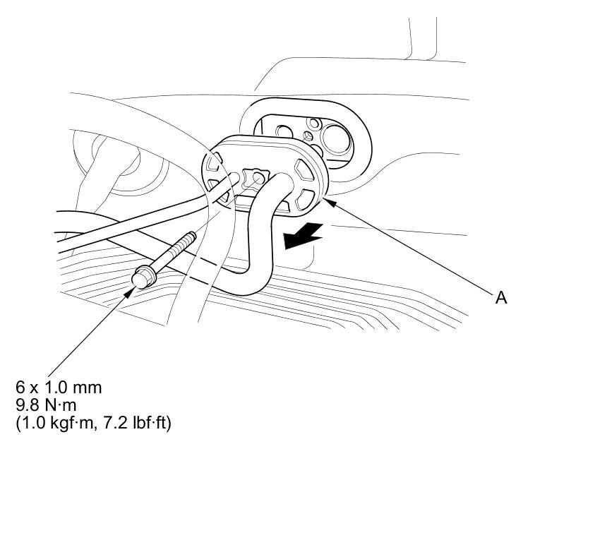 3. Remove the bolt, then disconnect the A/C line (A) from the evaporator core.