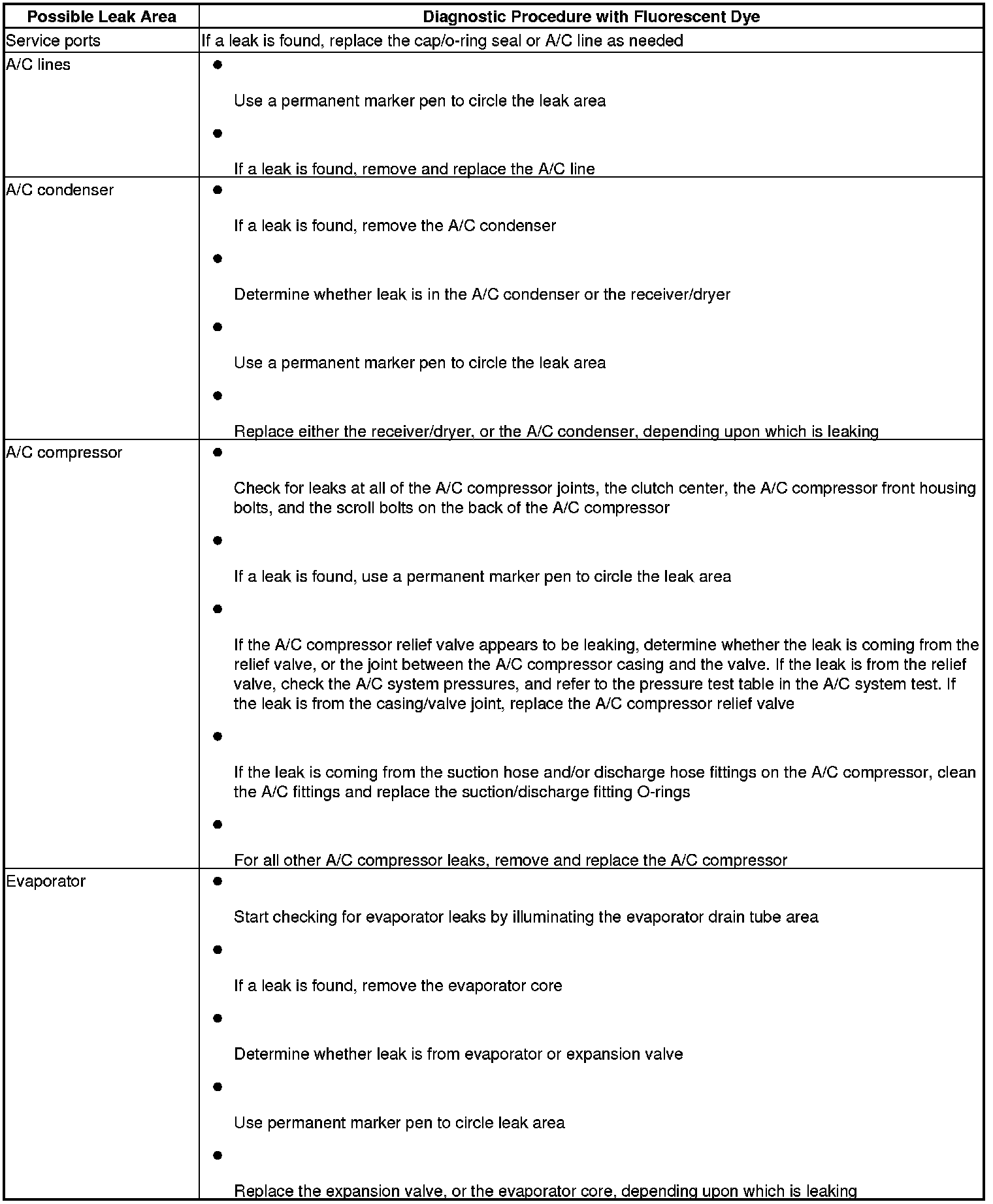 - Small leaks may take up to 1 week of vehicle operation (with normal A/C use) to become visible.
