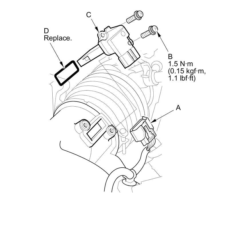4. Install the parts in the reverse order of removal with a new O-ring (D).