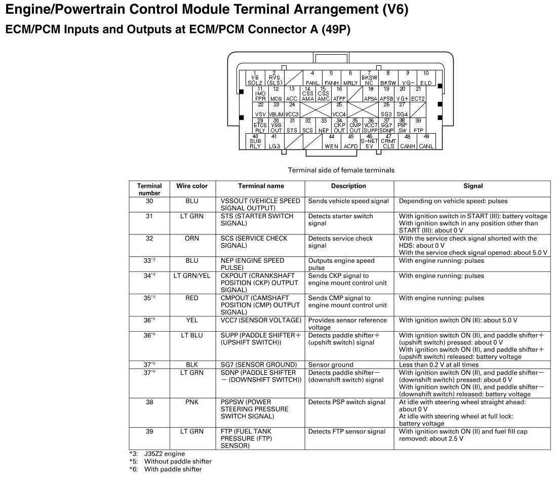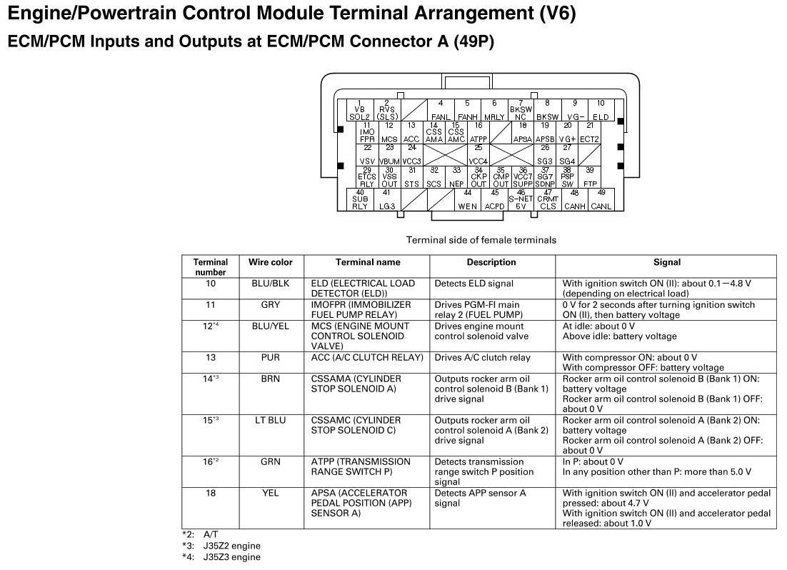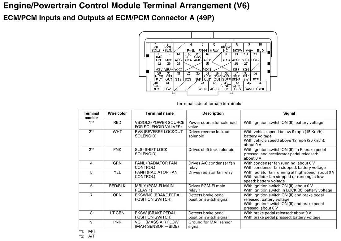 ECM/PCM Inputs And Outputs At Connector A