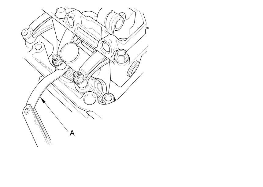4. Insert the feeler gauge (A) between the adjusting screw and the end of the valve stem on the No. 1 cylinder, and slide it back and forth; you should feel a slight amount of drag.