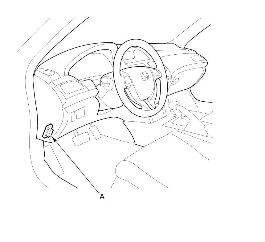 2. Connect the HDS to the data link connector (DLC) (A) located under the driver's side of the dashboard.