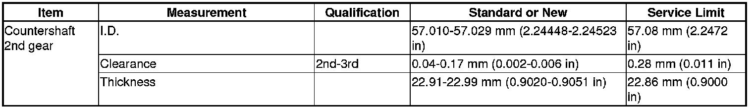 Countershaft 2ND Gear Specification(S) (M/T)