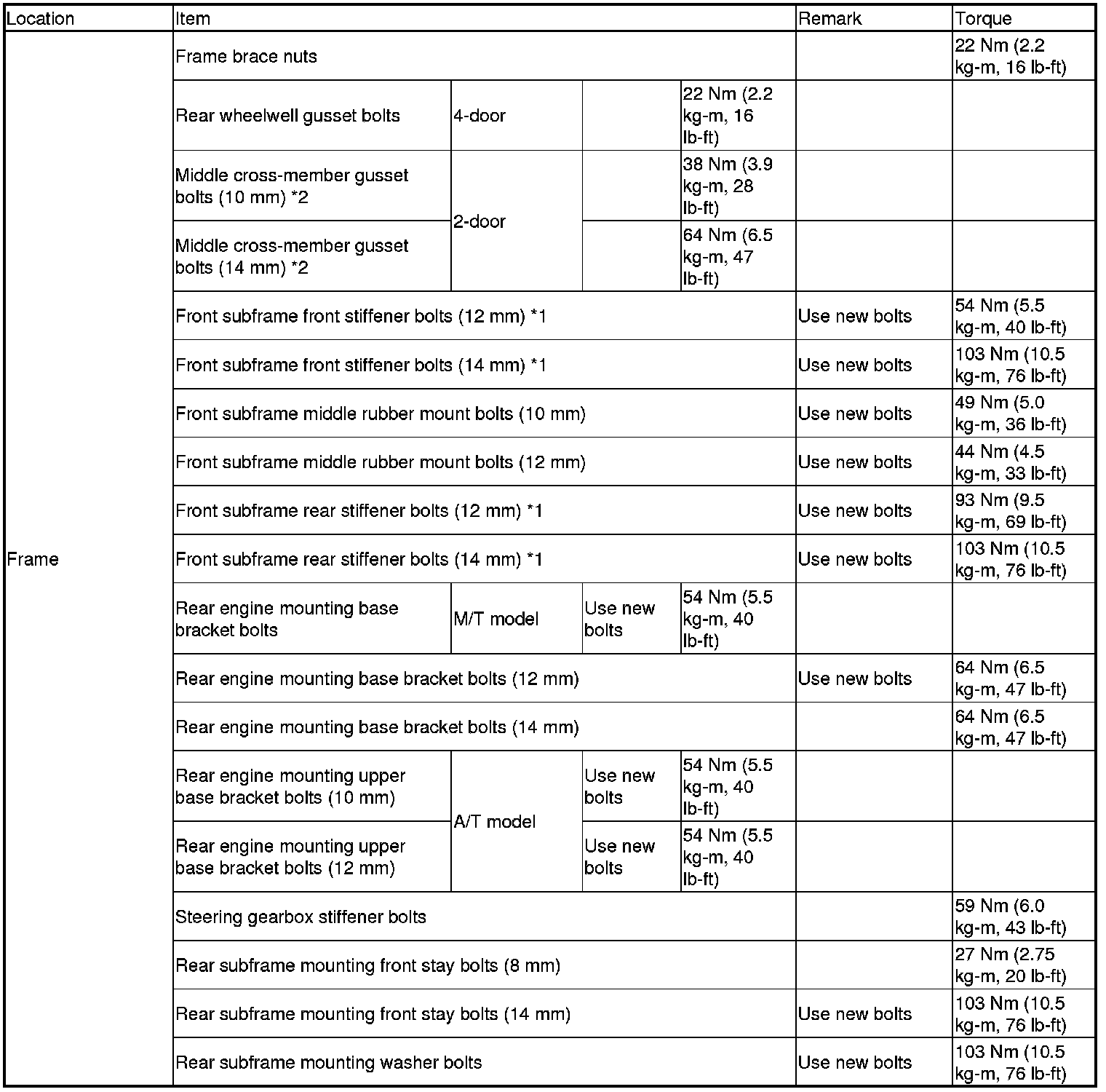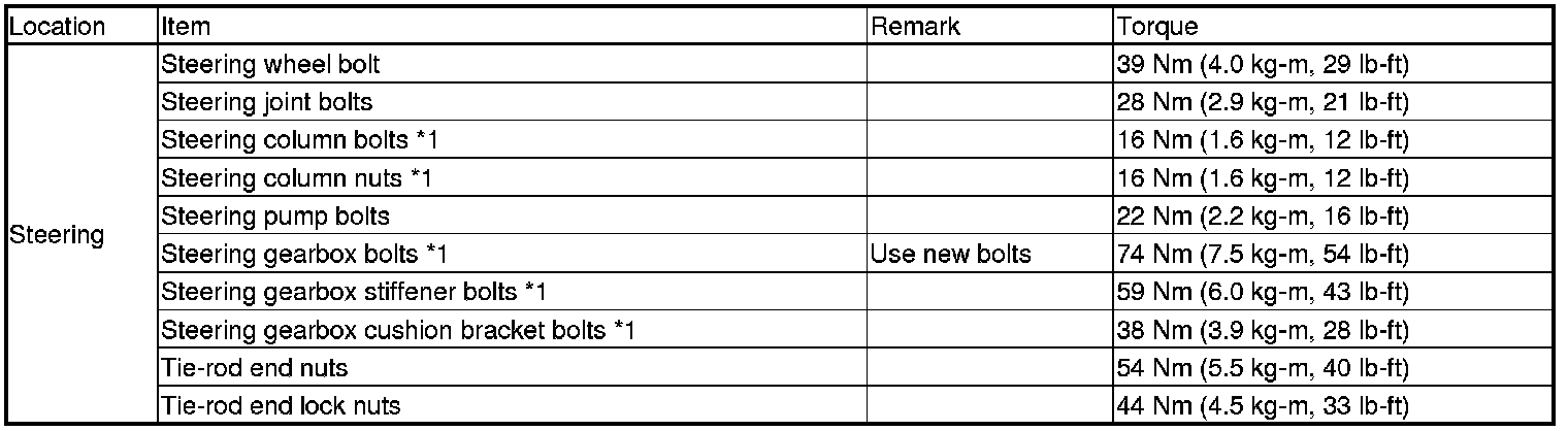 *Refer to each S/M section for the bolts/nuts not indicated here.