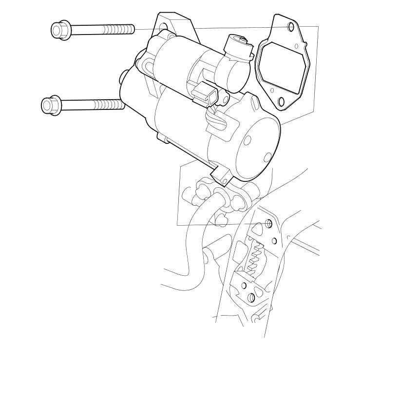 16. Remove the starter and the gasket from the transmission.