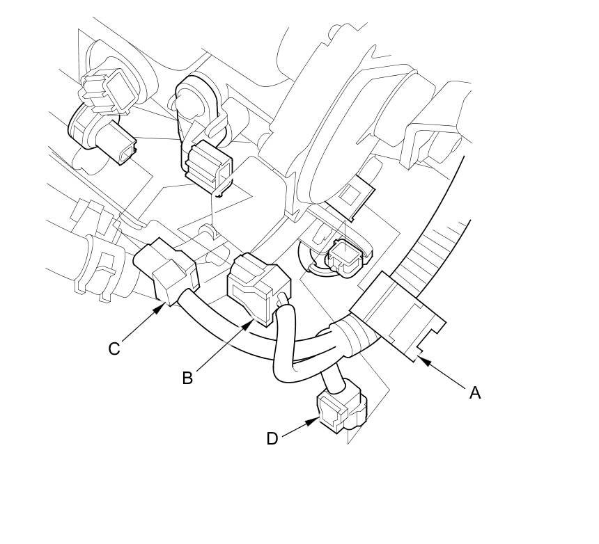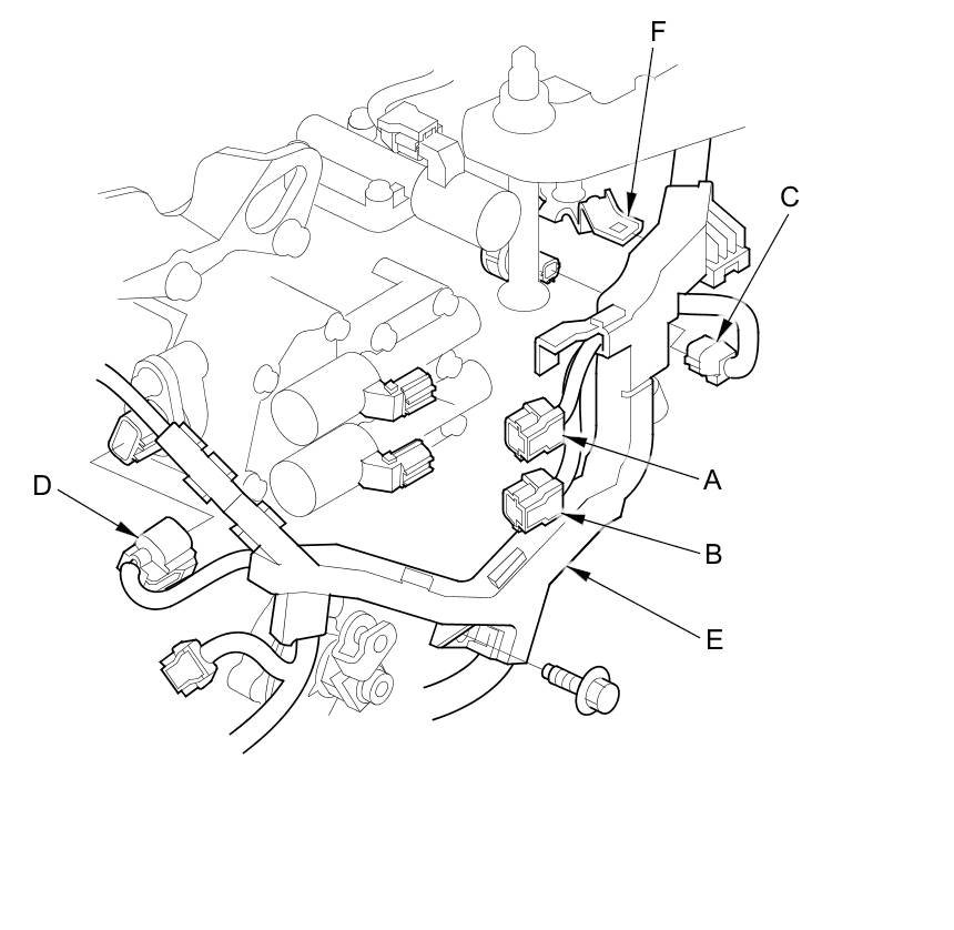 - Shift solenoid wire harness connector (D)