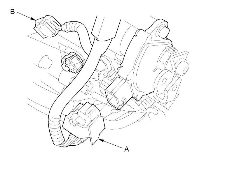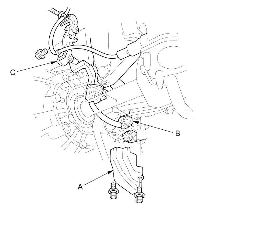 - Output shaft (countershaft) speed sensor connector (B)