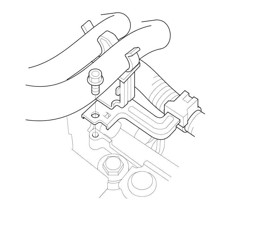 29. Remove the bolt securing the harness clamp bracket.