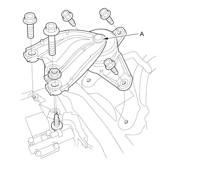 NOTE: Do not remove the TORX bolt (A) from the upper transmission mount assembly. If the TORX bolt is removed, the upper transmission mount must be replaced as an assembly.