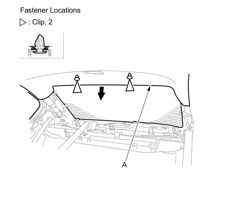 4. Pull down the rear area of the headliner (A) by detaching the clips.