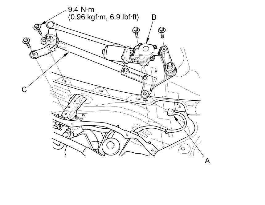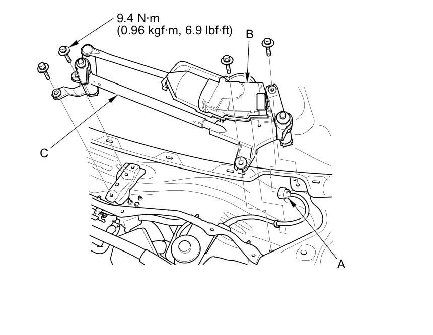 3. Remove the four bolts and wiper linkage assembly (C).