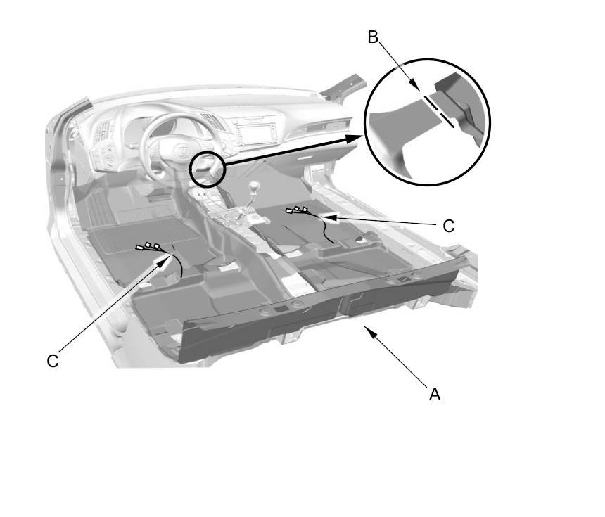 2. Pull out the floor wire harnesses (C) through the holes in the carpet.
