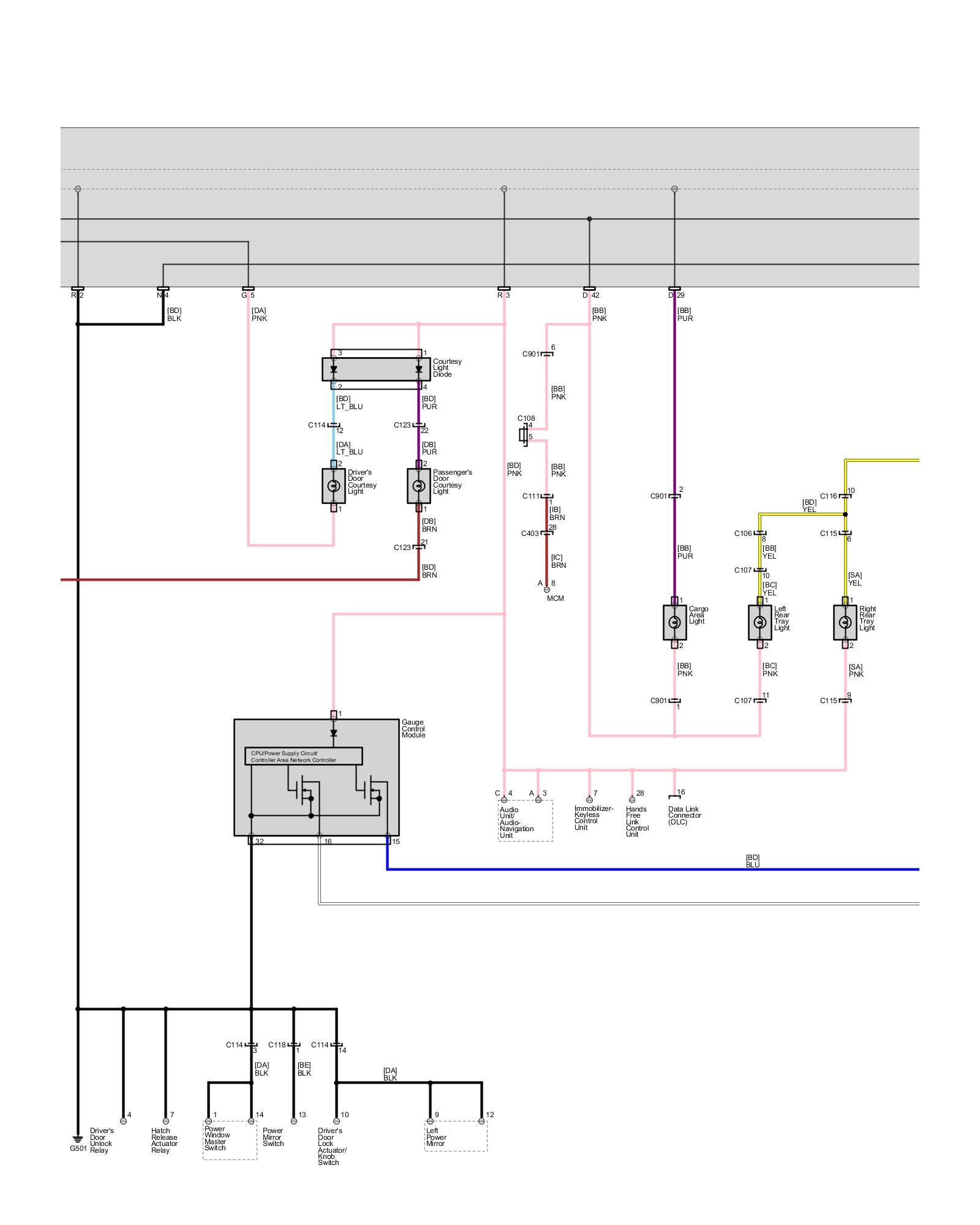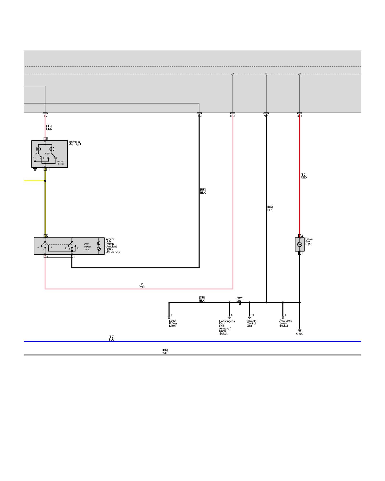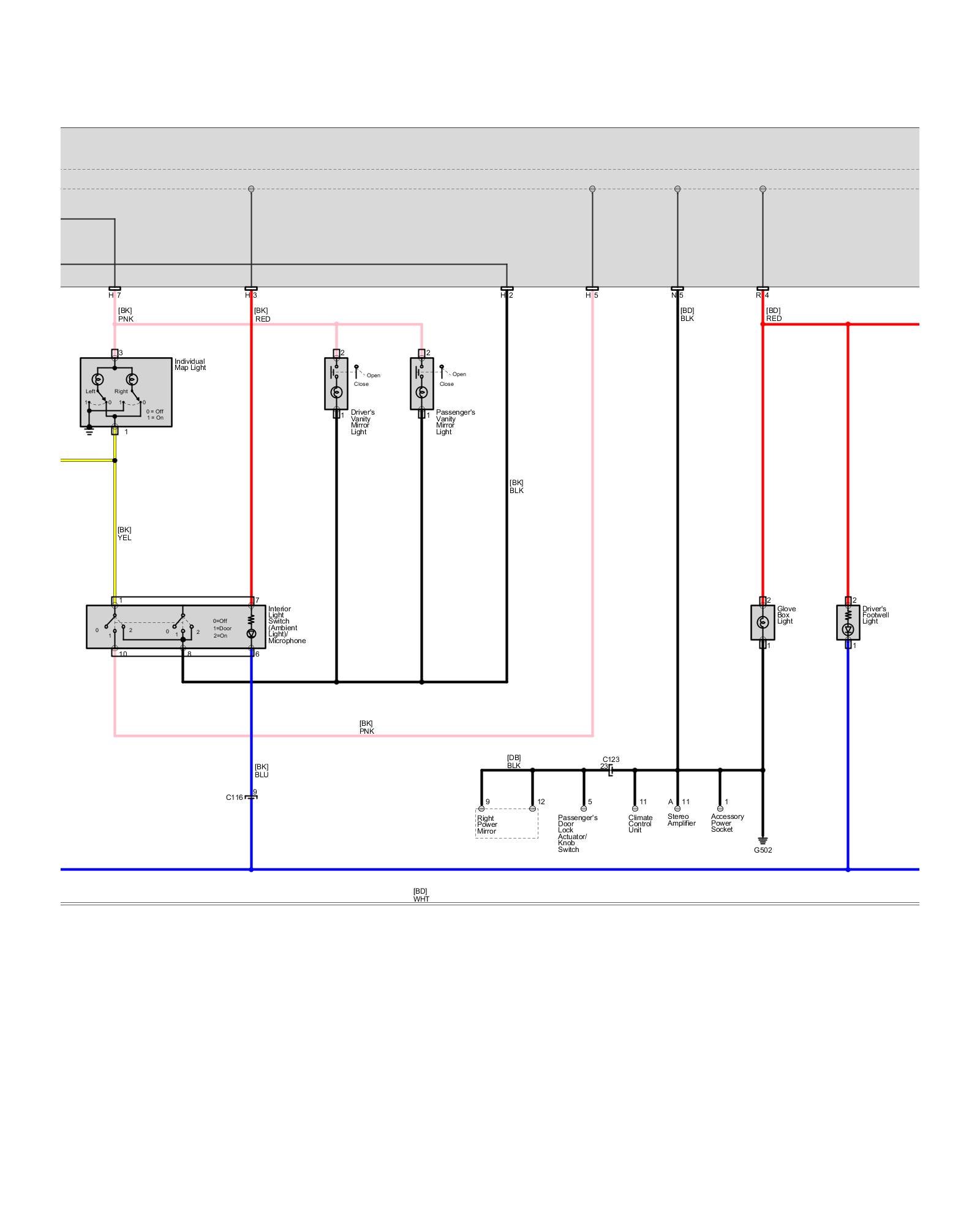 Body - Interior Lights - Ambient Light, Cargo Area Light, Console Lights, Courtesy Light, Footwell Light, Glove Box Light, Individual MAP Lights and Vanity Mirror Lights