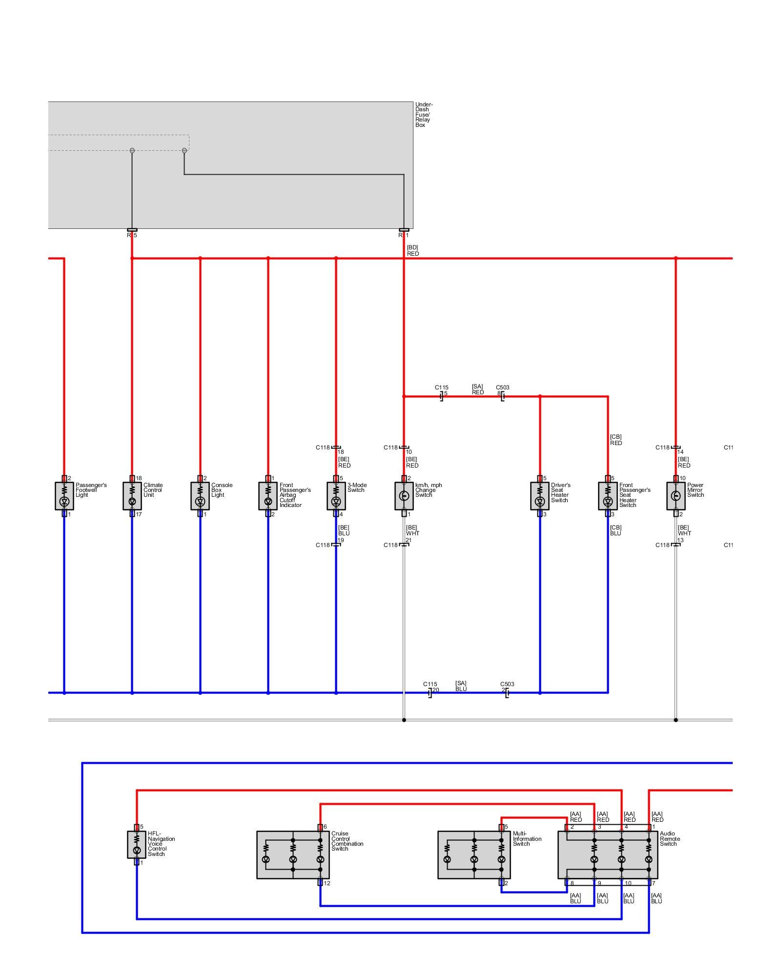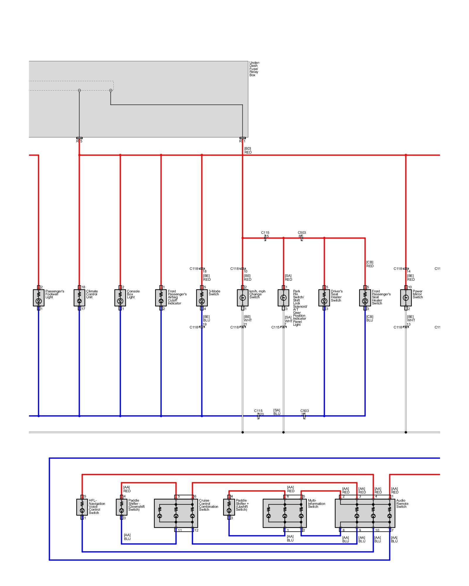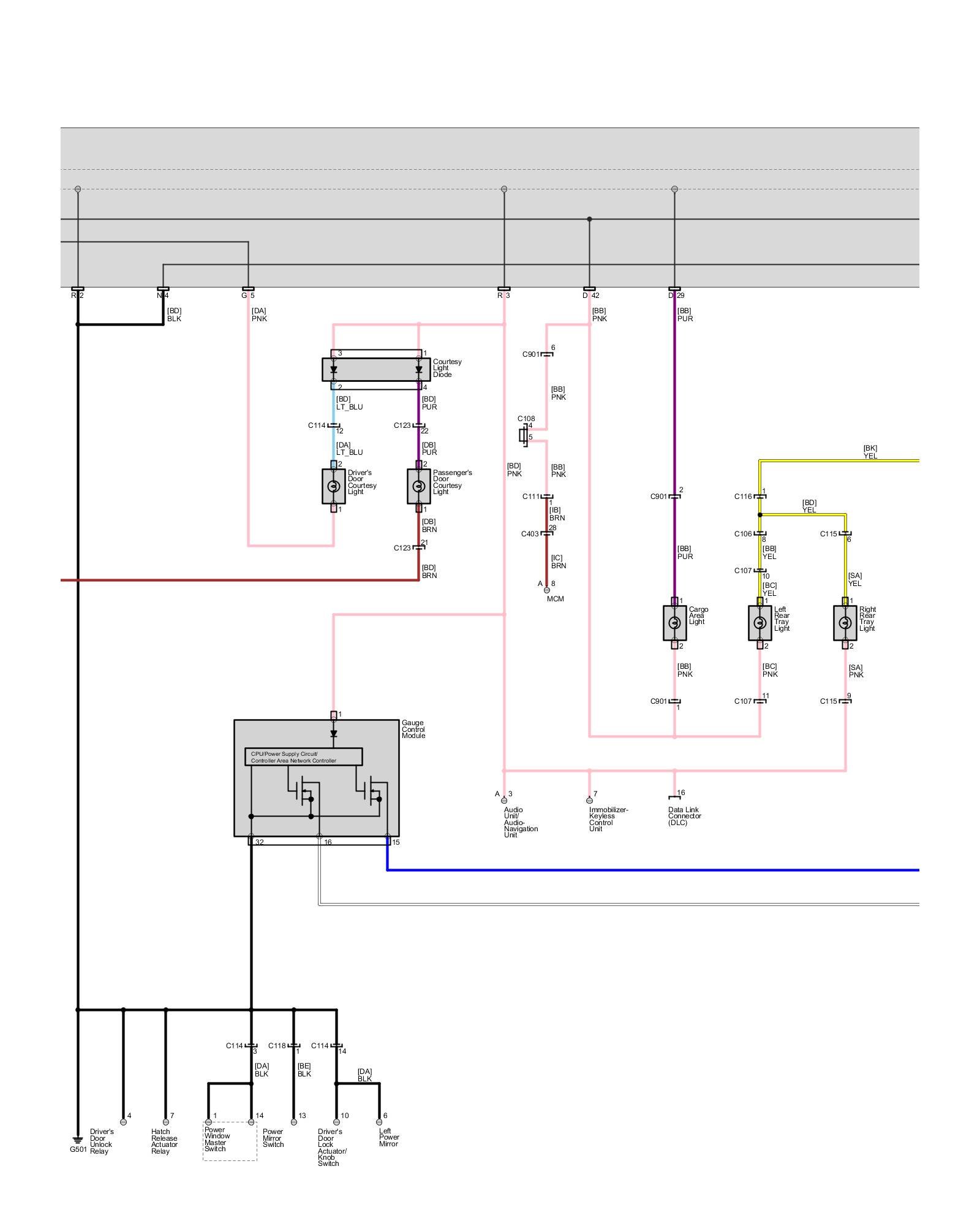 Body - Interior Lights - Ambient Light, Cargo Area Light, Console Lights, Courtesy Light, Footwell Light, Glove Box Light, Individual MAP Lights and Vanity Mirror Lights