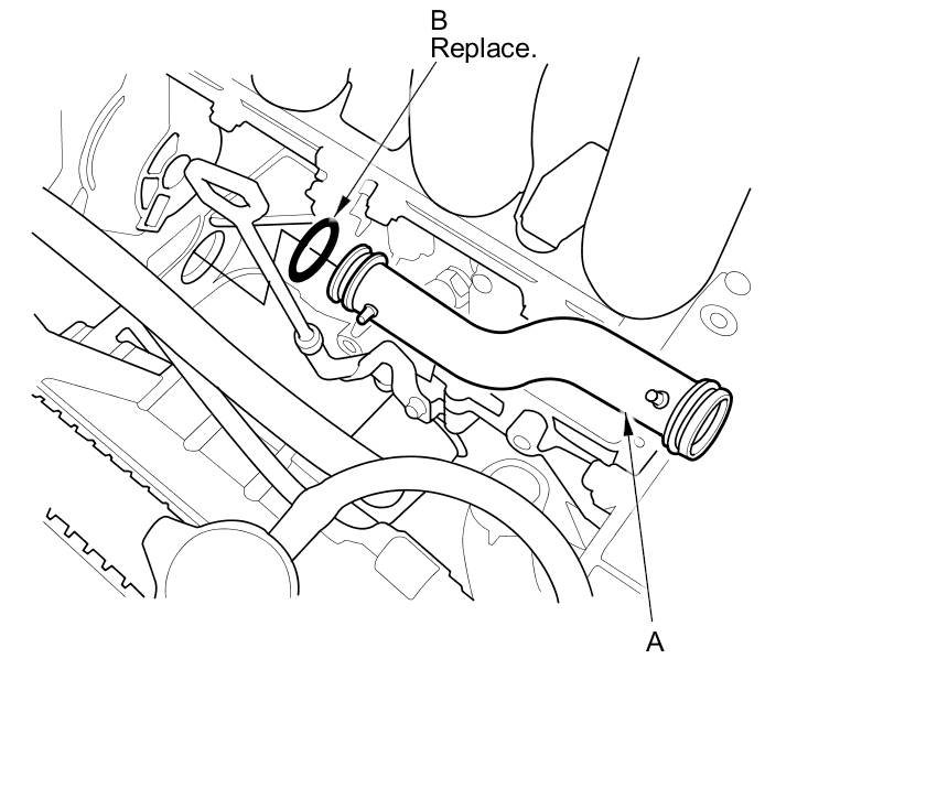 5. Install the connecting pipe with a new O-ring (B).