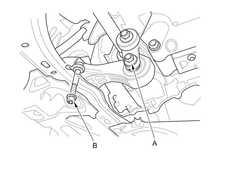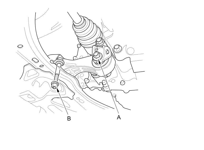 25. Loosen the torque rod mounting bolt (A) and nut (B).