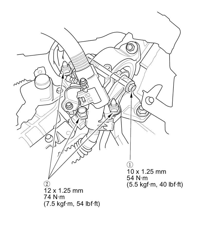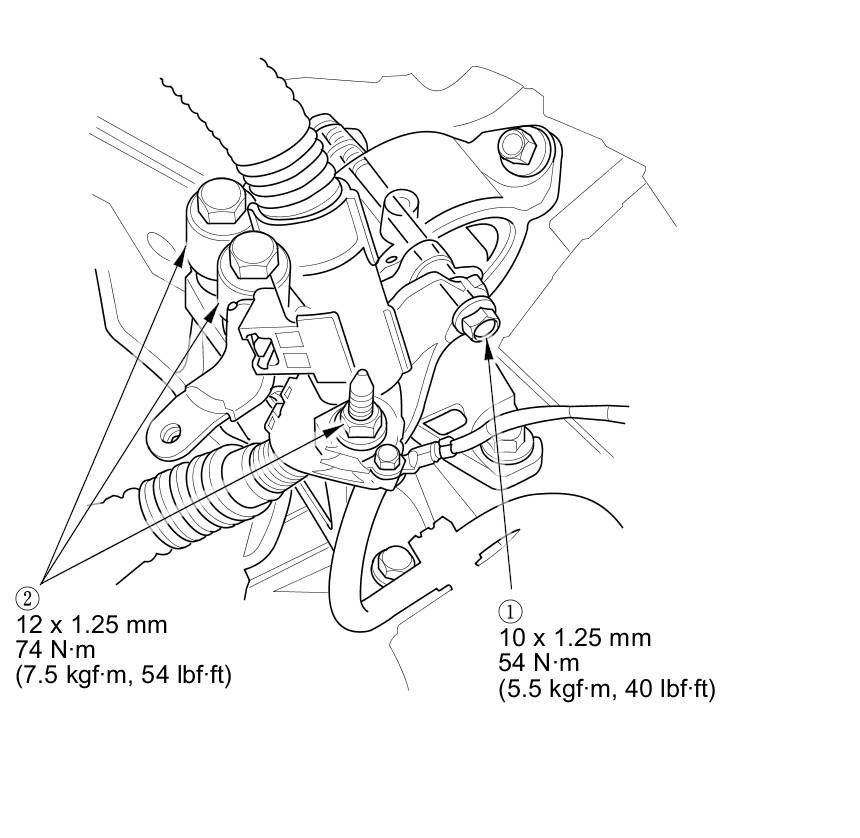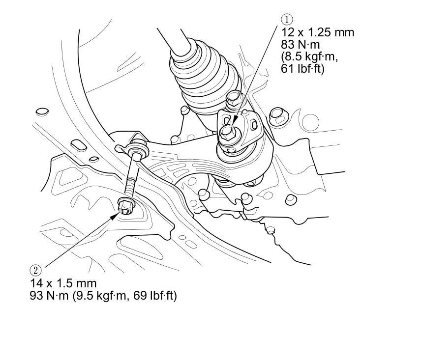 30. Tighten the torque rod mounting bolt and nut in the numbered sequence shown.