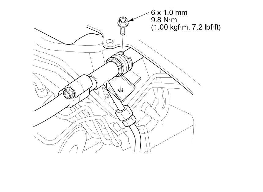 33. Install the A/C line bracket mounting bolt.