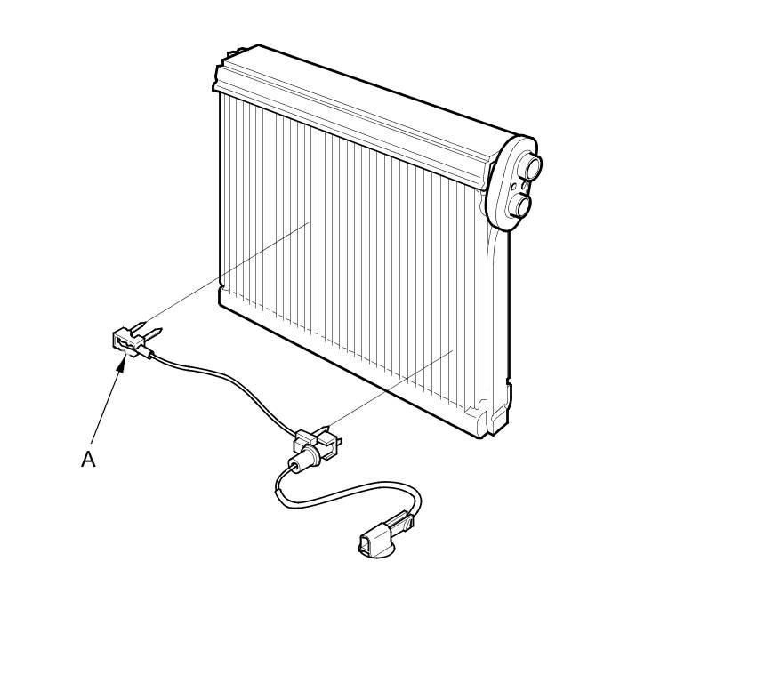 9. Pull out the evaporator temperature sensor (A) from the evaporator core.