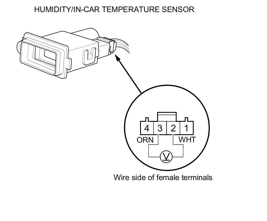 4. If the voltage is not as specified, replace the humidity/in-car temperature sensor Service and Repair.
