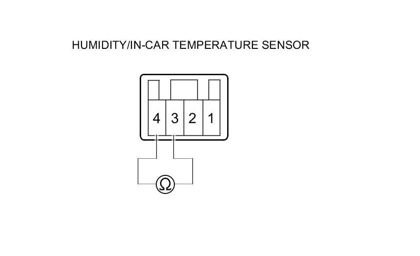 4. If the resistance is not as specified, replace the humidity/in-car temperature sensor Service and Repair.