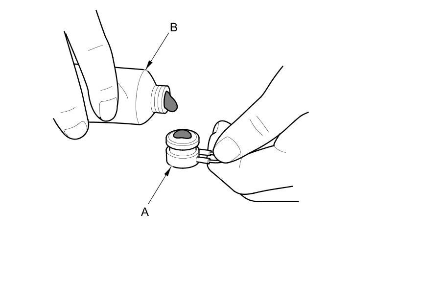 2. Replace the thermal protector (A) with a new one, and apply silicone sealant (B) to the bottom of the thermal protector.