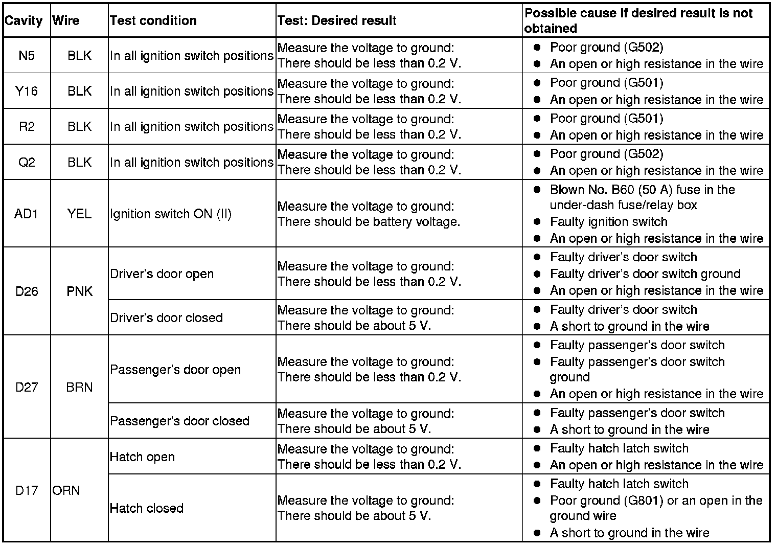 - Before testing, do the gauge control module self-diagnostic function Testing and Inspection to make sure the door indicator LED and the B-CAN communication line are OK.
