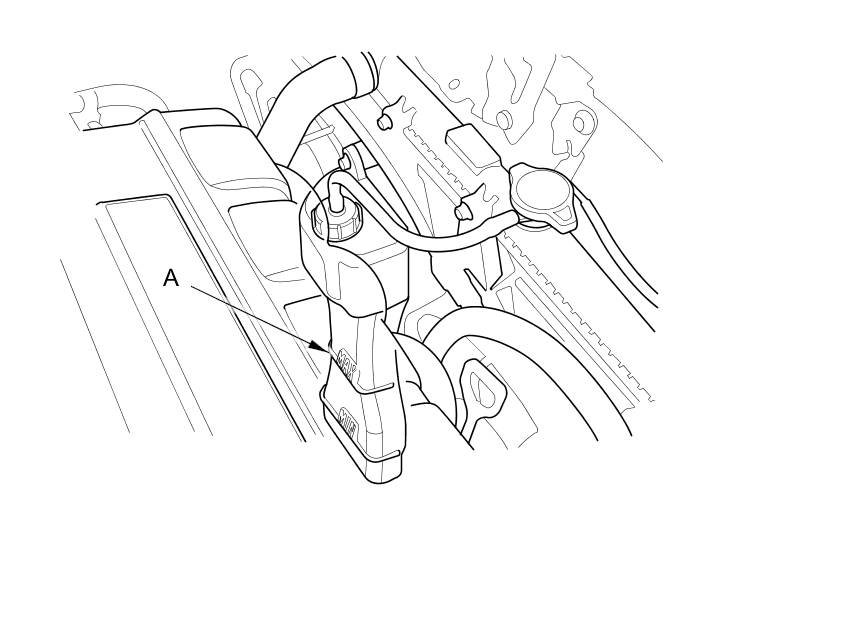8. Fill the coolant reservoir to the MAX mark (A) with Honda Long Life Antifreeze/Coolant Type 2.