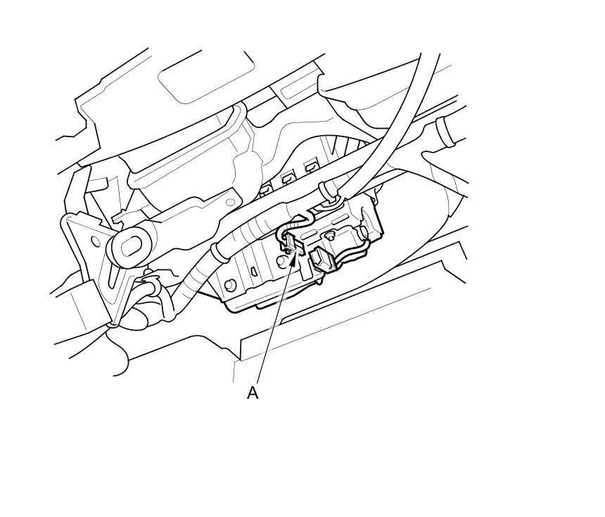4. Disconnect the front passenger's airbag inflator 4P connector (A) on the dashboard wire harness.
