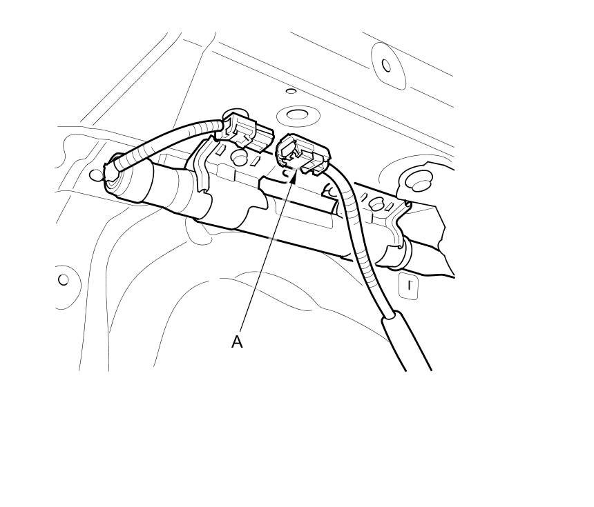 7. Disconnect the left and right side curtain airbag inflator 2P connector (A) on the driver's side or floor wire harness.