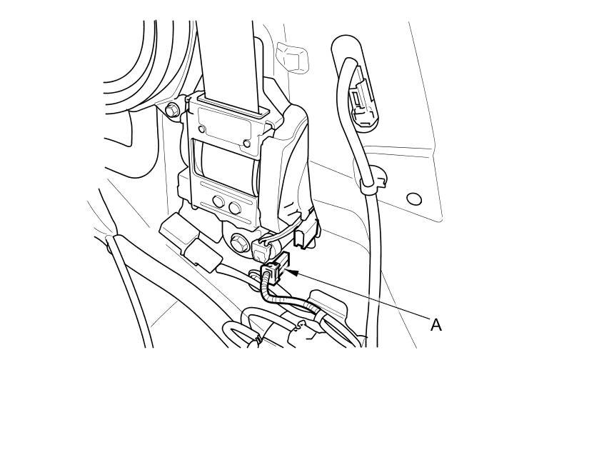 9. Disconnect the driver's and the front passenger's seat belt tensioner 4P connector (A) on the floor wire harness.