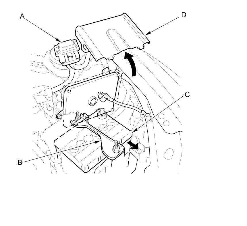 12. Remove the ECM/PCM cover (D).