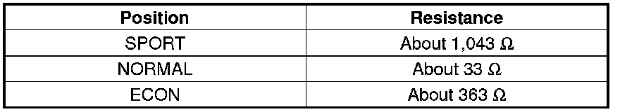 4. Measure the resistance between the 3-Mode switch 7P connector terminals No. 2 and No. 7 in each switch position according to the table.