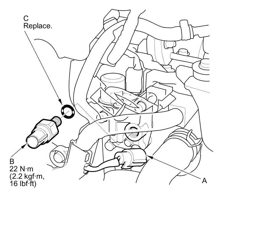 3. Install the parts in the reverse order of removal with a new O-ring (C).