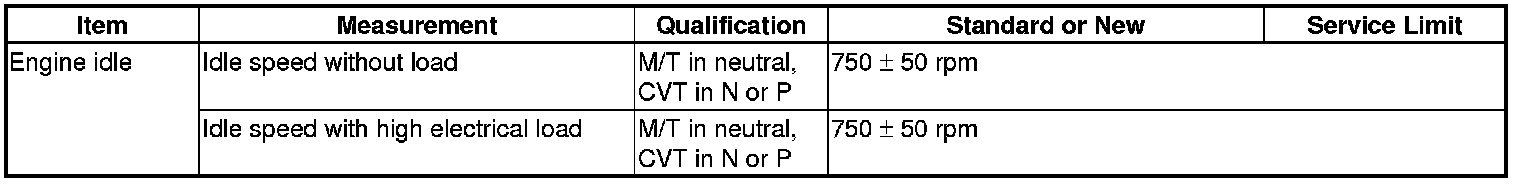 Idle Speed: Specifications