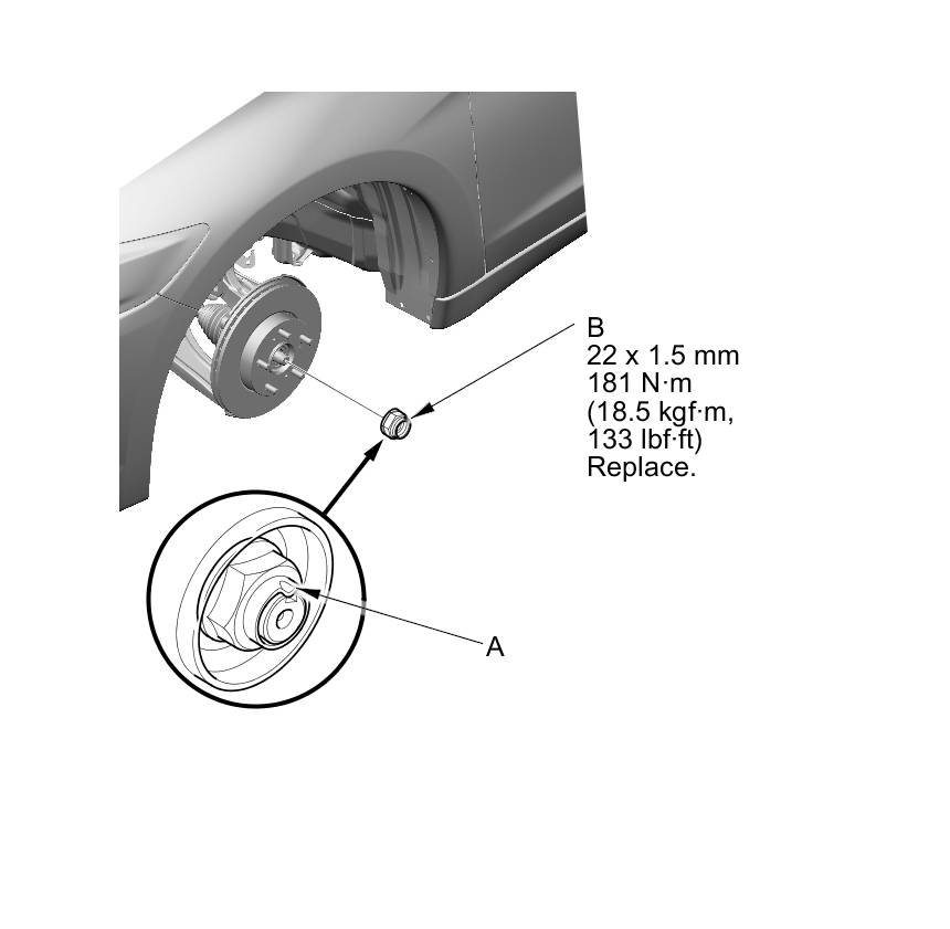 - Before installing the spindle nut, apply a small amount of engine oil to the seating surface of the nut. After tightening, use a drift to stake the spindle nut shoulder against the driveshaft.