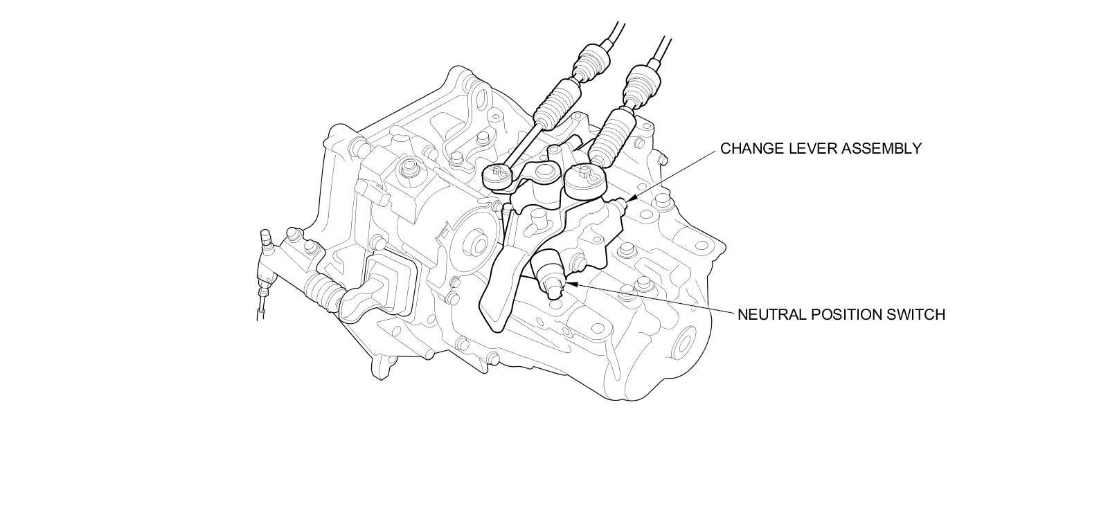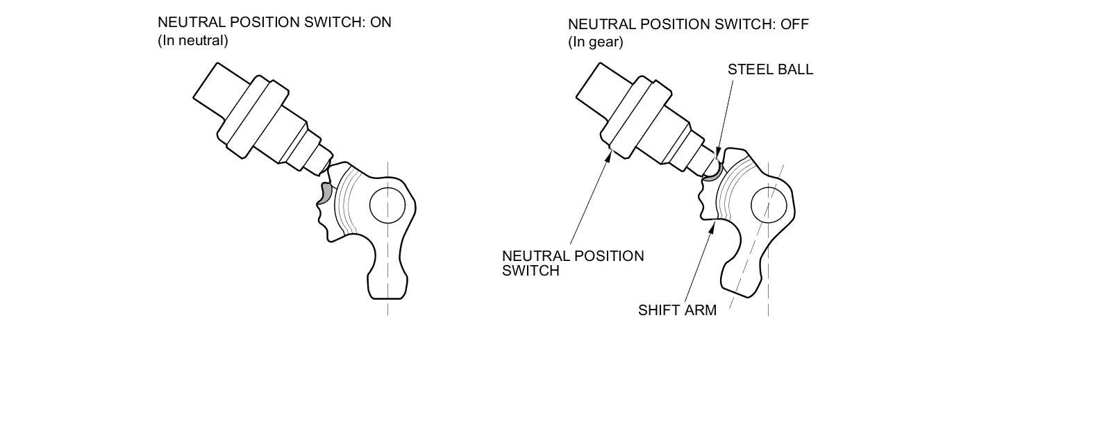 The change lever assembly has a neutral position switch. When the transmission is shifted to neutral, the shift arm pushes the steel ball of the neutral position switch and turns the switch ON. The vehicle has an Auto Idle Stop system, and the signal from the neutral position switch is one of the conditions for auto idle stop.