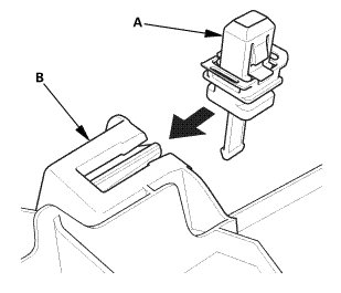 1. Carefully install the new upper clip (A) to the A-pillar trim (B).