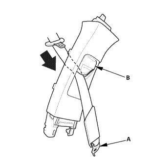 1. Pass the front seat belt lower anchor (A) in through the hole in the slider (B).