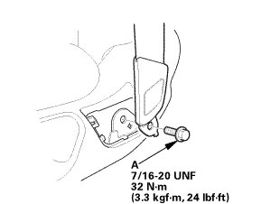 3. Install the bolt (A) securing the rear seat side bolster (B).