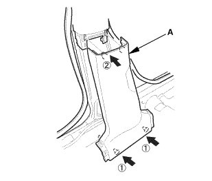 1. Install the B-pillar lower trim (A).