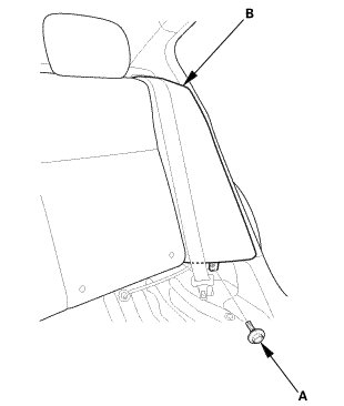1. Remove the bolt (A) securing the rear seat side bolster (B).
