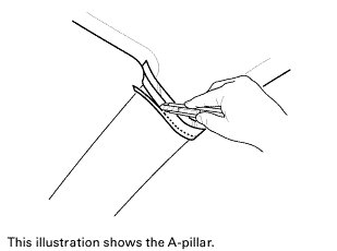 5. Remove the tape, and install the pillar trim.