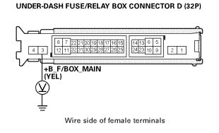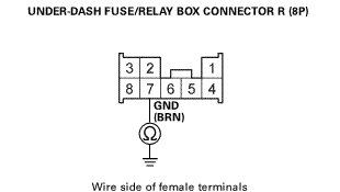 * Refer to the Electrical Wiring Diagrams for the location of the under-dash fuse/relay box connectors.