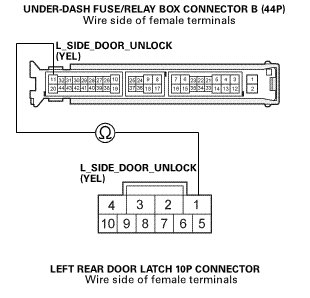 -2. Test the door lock actuator Front Door Lock Actuator Test (4-door).