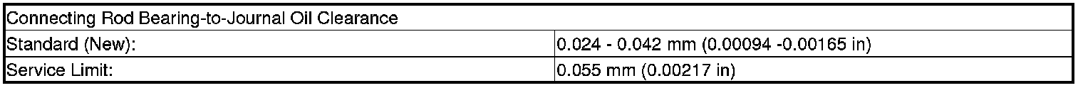 6. If the plastigage shows the clearance is still incorrect, try the next larger or smaller bearing (the color listed above or below the current one), and check the clearance again. If the proper clearance cannot be obtained by using the appropriate larger or smaller bearings, replace the crankshaft and start over.