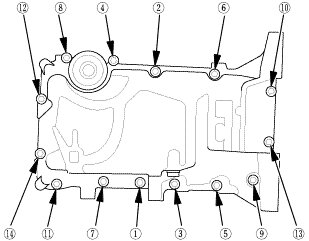 1. Remove all of the old liquid gasket from the oil pan mating surfaces, the bolts, and the bolt holes.