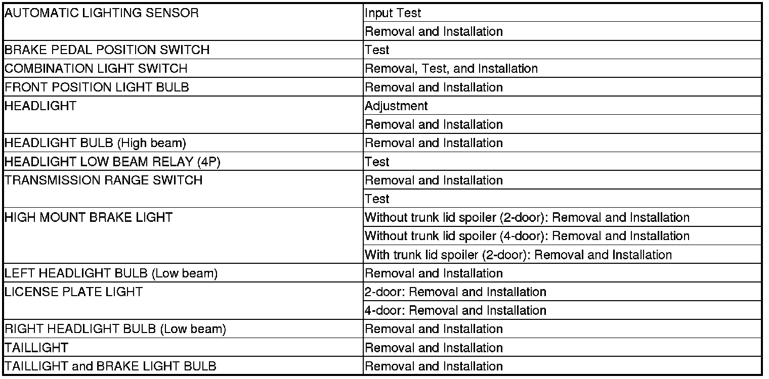 Exterior Lights Component Location Index